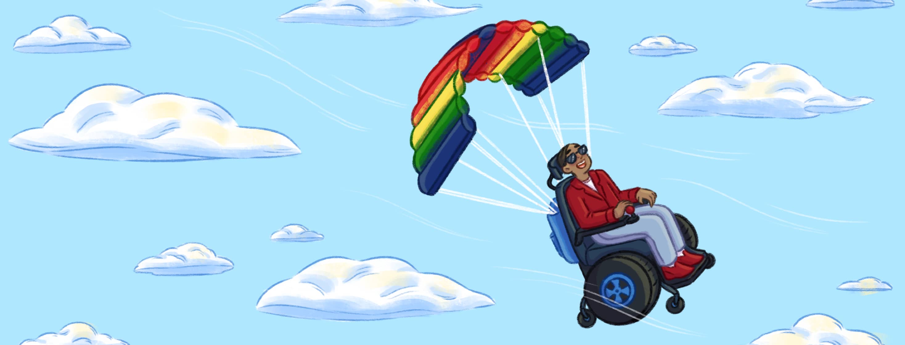 Chaz: Growing up, my friends would always ask me what was in the bag hanging on the back of my wheelchair. Some of them were convinced I carried around a parachute in case I drove my chair off a cliff.
